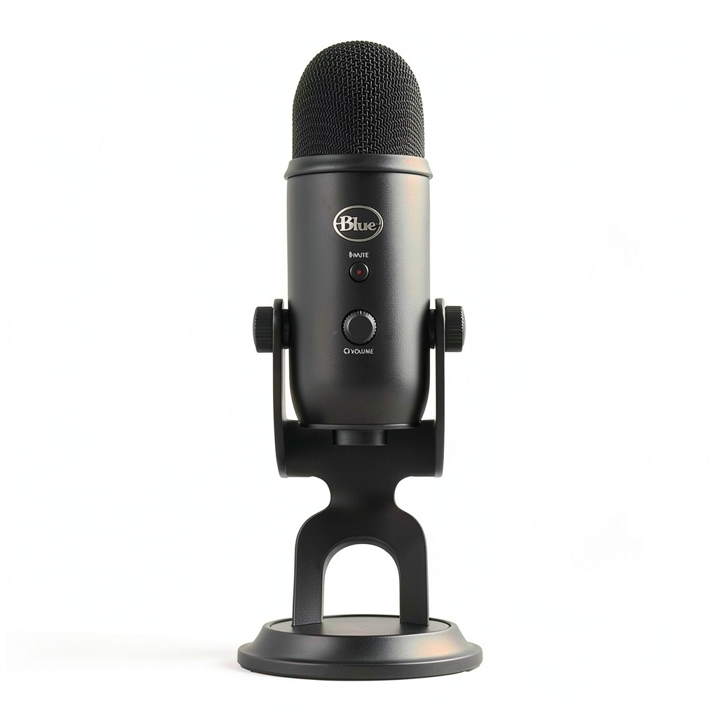 The Blue Yeti comes with a desktop stand for immediate use, and it can be connected directly to a standard mic stand if preferred. The package includes the microphone itself, but additional cables or pop filters may be purchased separately to enhance recording quality based on user needs.