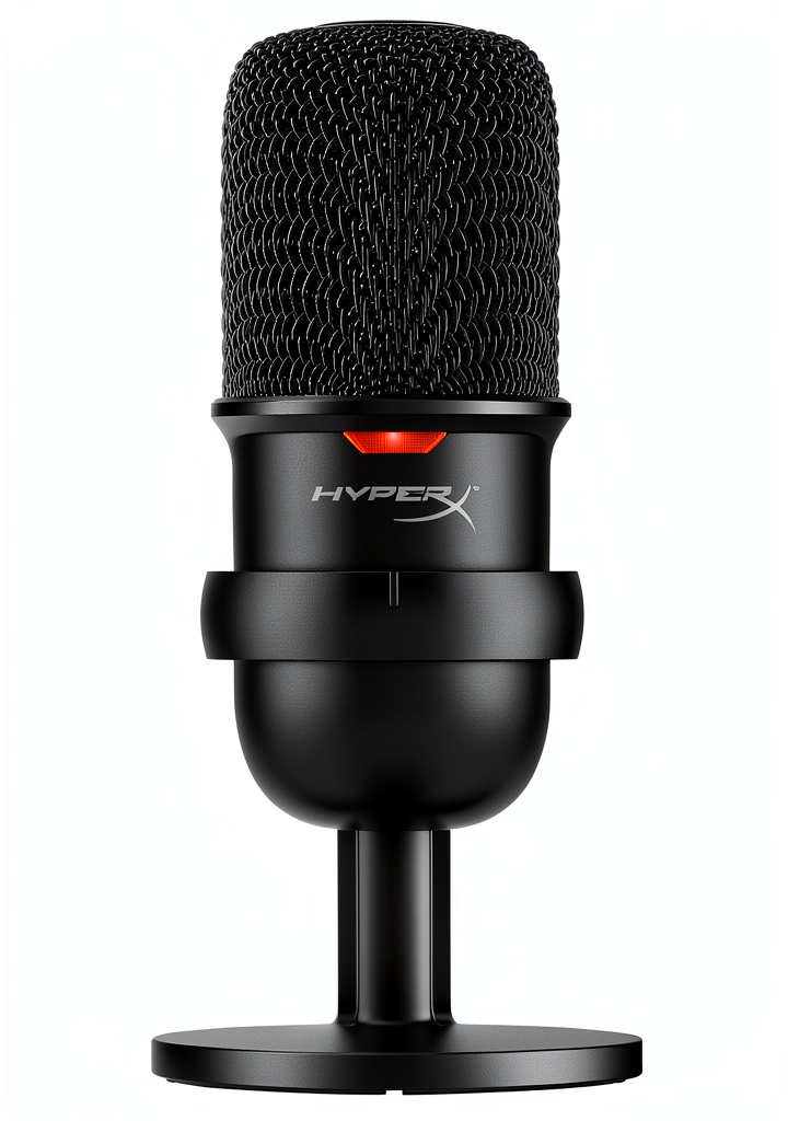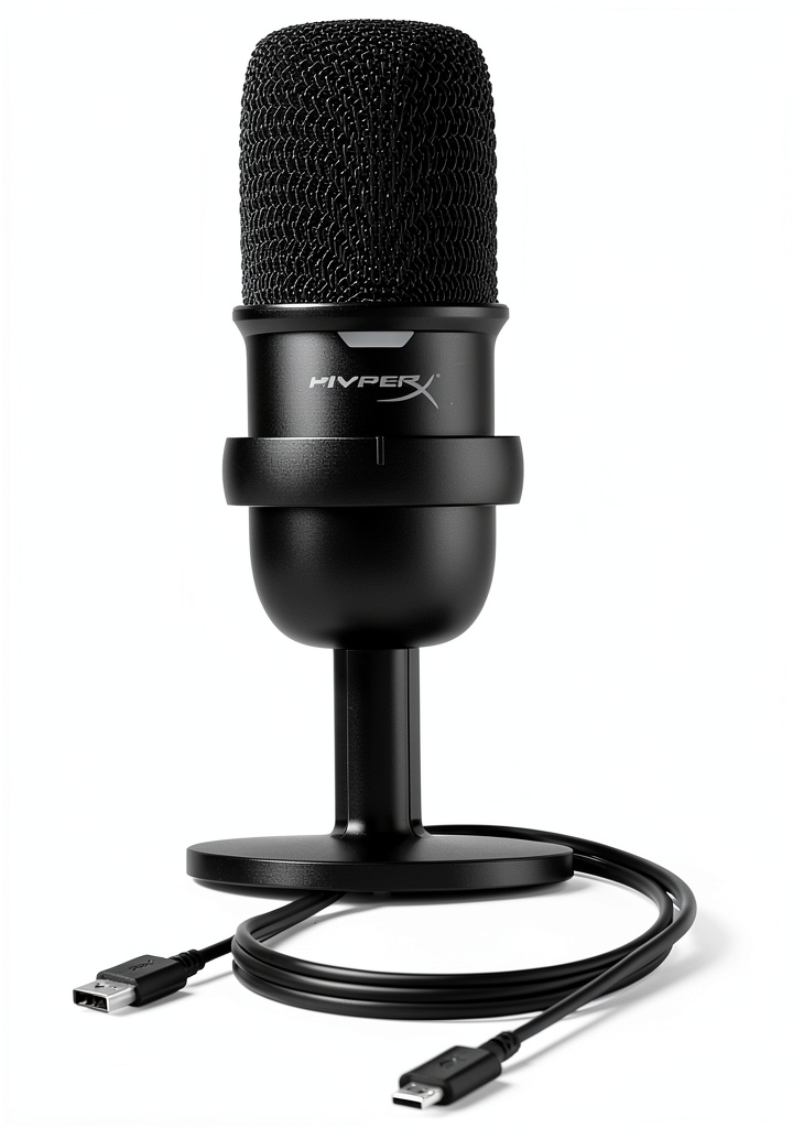 The HyperX SoloCast is a wired cardioid USB condenser microphone designed for high-quality audio recording. It features a USB-C connection for plug-and-play operation, supporting Hi-Res 24-bit/96kHz recording for studio-level sound. The microphone includes a tap-to-mute sensor with an LED status indicator, a flexible and adjustable stand, and threading for boom arms with 3/8-inch and 5/8-inch compatibility. Crafted for durability, it comes with HyperX NGENUITY software for customization and is certified by Discord and TeamSpeak, ensuring reliable performance across various devices and programs.