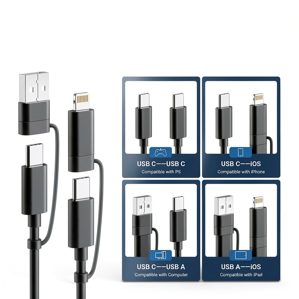 - Plug-and-play connectivity with a 4-in-1 USB cable for easy setup on computers and phones