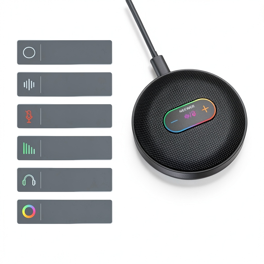 Neewer prioritizes quality and user experience, offering a microphone with robust noise cancellation and intuitive controls that outperform many competitors. The omnidirectional design eliminates the need for precise positioning, making it user-friendly for group settings. Built with a durable DSP chip, it reduces background noise effectively, ensuring professional-grade audio. Additionally, the plug-and-play functionality and broad compatibility reduce setup time, while the real-time monitoring feature allows users to verify audio quality instantly, providing peace of mind and superior performance.